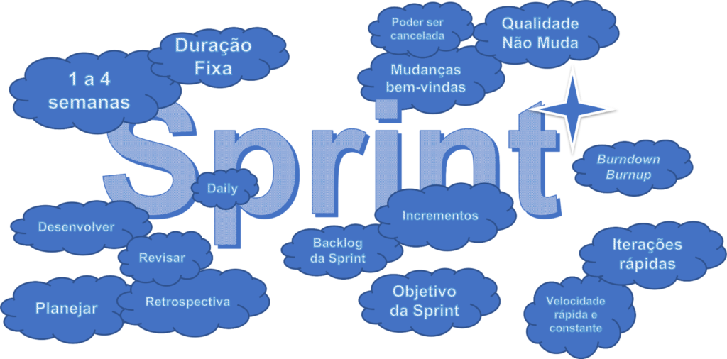 A seguir é apresentado uma nuvem de tópicos em relação a Sprint: