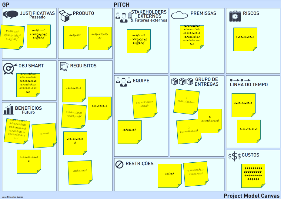 Outra ferramenta muito utilizada na fase inicial do projeto é o Project Model Canvas. O PMC é uma metodologia de gestão de projetos que de forma visual mostra as diversas áreas de conhecimento de um projeto para facilitar a compreensão de todos os envolvidos. Essa metodologia facilita a identificação de problemas e aumenta a objetividade na comunicação.