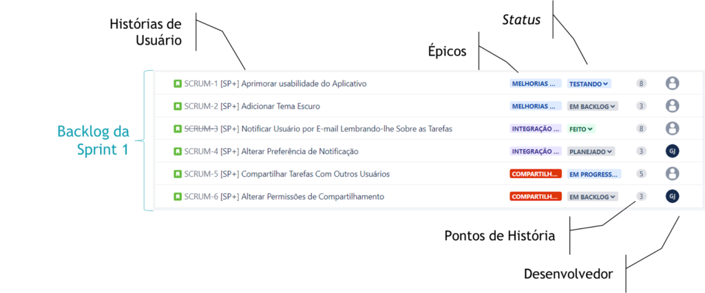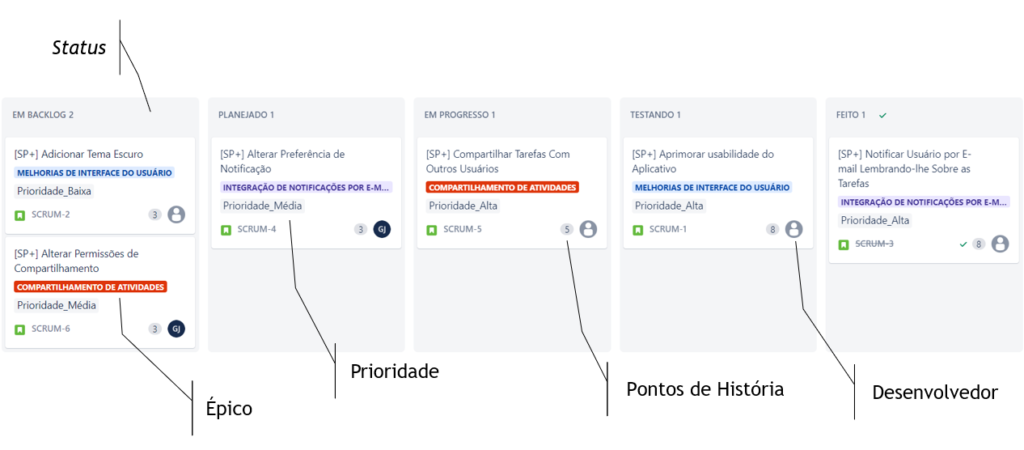 Os Desenvolvedores se beneficiam da visualização do fluxo do trabalho, bem como informações de quem vai fazer o quê, detalhes das Histórias de Usuário, de DoD, de DoR, dependências, Critérios de Aceitação, de estimativas e priorização em um único local.
